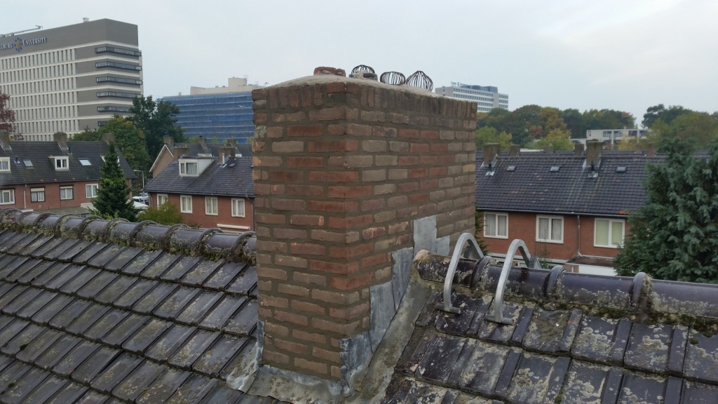 De schoorsteen staat bovenop het dak. Mooi, daar heb je geen omkijken naar. Helaas werkt het niet zo. Ook de voegen van de schoorsteen worden in de loop der tijd poreus. Van der Put Voegwerken renoveert deze.